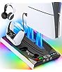 - Cooling Stand for PS5 With 3 Speeds Turbo Cooling Fan: The stand with cooling fan for PS5 and controller charger has a hight-efficent turbo fan to greatly cool down your console for PS5 by dissipating the hot air from the bottom of console for PSP even during long gameplay sessions, helping it stay away from overheating and extending its service life. The cooling fan for PS5/Slim/Pro in this vertical stand for PS5 slim can be adjusted to High, Mid, Low 3 speeds to meet your different need
