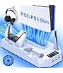 PS5/Slim/Pro Station with Dual Controller Charging Station for PlayStation 5 Console, PS5 Accessories Incl. Controller Charger, Cooling Fan, Headset Holder,3 USB Hub-White