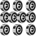 Zeelo 10-Pack 6205-2RS Sealed Ball Bearing 25x52x15mm Pre-Lubricated/Chrome Steel/Rubber Double Sealed, 6205RS Deep Groove Ball Bearing