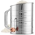 Product Summary: Zulay 3 Cup Stainless Steel Flour Sifter - Fine Mesh Rotary Hand Crank Flour Sifter with Agitator Wire Loop For Baking Cakes, Pastries, Pies, Cupcakes and Desserts
