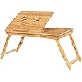 SONGMICS Bamboo Laptop Desk Serving Bed Tray Breakfast Table Tilting Top with Drawer ULLD001