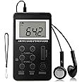 AM FM Pocket Radio, ALLOMN Portable Digital Tuning AM FM Stereo Radio with Rechargeable Battery, LCD Display and Earphone for Walking (Black)