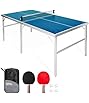 Product Summary: Soozier 6x3ft Compact Midsize Table Tennis Table Multi-Use Family Ping-Pong Table Free Standing Folding Blue