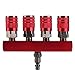 Hromee 4-Way Straight Air Manifold 5 Ports Aluminum Industrial Pneumatic Air Compressor Quick Connect Socket In Line Type Air Hose Splitter with 4 Couplers and 1/4" Male NPT Plug
