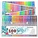 100 Gel Pen Coloring Set - Neon, Fluorescent, Glitter, Metallic, Pastel Gel Pens for Kids and Adult - No Duplicates Non Toxic Color Gel Pens