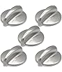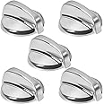 WB03T10284 Burner Control Knobs Compatible with General Electric GE Range Stove Oven Knob, Replaces PS2321076 AP4346312 1373043 AH2321076 EA2321076, Stainless Steel Finish(5 Pcs)