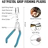 - ✅45° Pistol Grip Fishing Pliers - Multi-purpose pliers include Split Ring Head, Hook Remover, Wire Strippers, Crimper, Wire Cutter for ordinary nylon fishing wire, carbon wire or iron wire. Three crimping slots are designed for different types of leads. Quickly remove hook or replace treble hook on your lure while catching fish or utilize the carbide cutters to cut fishing line or other fishing tasks. Spring non-slip grip handle avoids pliers slipping. Overall Length: 9 inches; Weight: 8 oz.