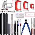 - 💕【2. Cost Efficient & Full Range】Package include: 1 X Diagonal Plier, 1 X Hand drill and 10 X Drills, 1 X Polishing cloth, 1 X Mini table vises, 1 X Steel ruler, 1 X Polishing Block, 2 X Screwdrivers, 3 X Tweezers, 3 X G clamp( C clamp ), 4 X Polishing Bars, 5 X Files, which are packaged in a sturdy plastic box and a blue waterproof bag in case of damage.