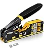 - 【Multi-function Tool】The built-in stripper and cutter allow you to manage your own pressure for different cable depths, the sharp blades cut wires off cleanly and neatly, enabling you finish stripping, cutting and installing with one tool.