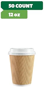 • Complete Set: Each package includes 50 sets of 10 oz. insulated kraft ripple paper hot coffee cups with lids, providing everything you need for enjoying hot beverages on the go or at the office.
