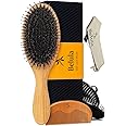 Product Summary: Belula Men's Hair Grooming Set: Boar Bristle Brush, Nylon Pin Brush, Wooden Comb, and Travel Bag for Styling