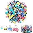 Nicunom 272 Pcs Binder Clips Paper Clamps Assorted 4 Sizes, Assorted Color Paper Binder Clips Metal Fold Back Clips for Office, School and Home Supplies