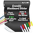 Large Chalkboard Wall Sticker, ACVVIP Self-Adhesive Chalk Board - 16.5" x 118" (9.8 ft) - 6 Chalk Markers & 5 Chalks & 1 Eraser Cloth – Blackboard Sticker for Classroom, Home, Office