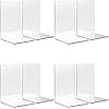 WUWEOT 8 Pack Acrylic Bookends, Clear Book Stopper Desktop Organizer for Books, Notebooks, CDs, Perfect for Bedroom Shelf Library School Office, 7.2×4.8×4.8 Inch