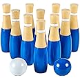 - ✔[INDOOR & OUTOODR FUN GAME] The complete wooden lawn bowling game set includes 10 exquisite wooden bowling pins (7.5’’ in height, 105-110g), 2 bright blue and white wooden bowling balls (2.5’’ in diameter, 70g) and a portable drawstring bag. An excellent indoor and outdoor game bowling set for adults to enjoy pastime, which is easy to set up and play on the flat ground such as backyard, lawn, park, driveway etc.