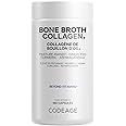 Codeage Organic Bone Broth Collagen Capsules Grass Fed - Pasture Raised Chicken Bone Broth Collagen - 180 Capsules