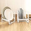 Made of food-safe white coated heavy duty iron steel, square structure, no installation required. - UPDATE PLATE HOLDER FOR CABINET, comes with a durable rubber guard liners, it means that plates can be in a vertical mode to storage and display. And dishes can be free standing upright without slipping. - Compare with wood, glass, plastic plate rack, it is more sturdy, durable and reusable. - Dish holders for plates would save your cabinet, countertop, table, pantry, cupboard, corner space, keep your kitchen tidy, organized and efficient.