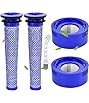 4 Pack Vacuum Filter Replacement Kit with Clean Brush for Dyson V8 Absolute, V8 Animal, V7 Absolute, Motorhead, Animal - 2 HEPA Post Filter, 2 Pre Filter, Replaces Part # 965661-01 & 967478-01