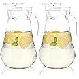 SOUJOY 2 Pack Plastic Pitcher, 2L/68 Oz Clear Iced Water Jug with Lid and Handle, Heat Resistant BPA-Free Tea Pitcher for Lemonade, Juice, Milk, Cold or Hot Beverage