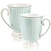 Dicunoy 2 Pack Bone China Mugs, 11oz Fine China Coffee Tea Cups with Gold Trim, Thin Bone China Tea Mugs, Vintage Cup with Pedestal for Valentine's Day, Mother's Day, Birthday, Christmas Gift
