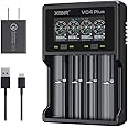 XTAR Universal Smart 4 Bay Battery Charger VC4 Plus Type C LCD 18650 Battery Charger for 3.7V 3.6V Li-ion Rechargeable Battery 16340 14500 18650 21700 26650 and Ni-MH Ni-CD AA AAA with 18W Adapter