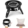 - 【Easy to Assemble & Height Adjustable】 - This gas fire stove is easy to set up in minutes with no additional installation tools. Simply attach the 3 foldable and adjustable height legs and make the propane fire pit more stable. The supporting legs of the fire pit can be folded twice, meaning you can choose two heights to suit different usage scenarios and meet the needs of different people. All weather outdoor fire pit is ready to create warm and smokeless bonfire atmosphere.