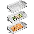 Onlyfire 3 Pack Rectangle Grill Baskets, Stainless Steel Vegetable Baskets, Mini Grilling Basket Set, Grill Pan for Outdoor Grill