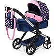 Bayer - Dolls Pram Xeo - Baby Doll Stroller for Dolls with Bag, Adjustable, Reversible Handle, Foldable - Dolls Up to 18” - Age 3+ - Dark Blue Pink Star - 17016AA
