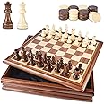 VAMSLOVE Chess and Checkers Board Game Sets for Adults Wooden Deluxe 15 inch Wood Board Box with Storage, Classic 2 in 1 Large Size with Chess Pieces - 3” King Height - 2 Extra Queens