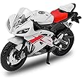 The die cast motorcycle model body adopts classic white with red lace design, showing a dynamic racing style. The streamlined seat at the rear, combined with the visual contrast of black and red, creates a strong sense of speed, which is suitable for players and collectors who like motorcycle culture.