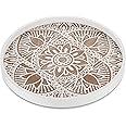 Hanobe Round Decorative Tray Farmhouse: White Coffee Table Decor Boho Rustic Wood Ottoman Tray for Centerpiece Serving Trays for Kitchen Counter