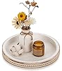 This item: Hanobe Round Decorative Tray Farmhouse: White Coffee Table Decor Boho Rustic Wood Ottoman Tray for Centerpiece Serving Trays for Kitchen Counter