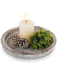 • NICE & PRACTICAL - This round wood tray not only can easy to carry tea light, candle holder, plant, coffee, tea, snacks etc for your daily use, but also to collect small items like coasters, keys, cellphones, remotes, books, journals, or some table decor items, corral the clutter.