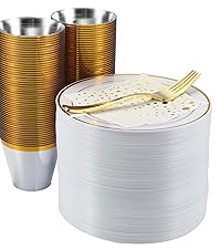 This item: Stylish Gold Dinner Napkins, 100 Pack White and Gold, 7.5 x 4.25 Inch Disposable Paper Napkins for Party, Wedding, and Events