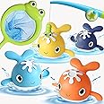 Magnet Fishing Game Bath Baby Toy for 1-3 4-8 Year Old Toddler Boys Girls,Gifts for Kid,Baby Bathtub Water Shower Pool Toys 18 Months+,4 Swimming Wind-up Whale&1 Fishing Pole&1 Net