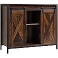 HOMCOM Industrial Sideboard, Buffet Cabinet with Sliding Barn Doors, Storage Cabinets and Adjustable Shelves for Living Room, Kitchen, Home Bar, Rustic Brown