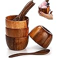 • Lyellfe Set of 4 Acacia Wooden Bowl, 4 Oz Small Dipping Sauce Bowl with Spoon, 3 Inch Charcuterie Dish, Soup Water Cup for Condiments, Jam, Nuts, Appetizer, Snack, Yogurt
