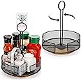 This item: Yesland 2 Pack Metal Rotating Condiment Caddy with Number Card Holder, 7.75 Inch Round Table Caddy with Wooden Base Black Coated Table Caddies Collection for Salt, Pepper, Ketchup, Hot Sauce, Mustard