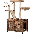 HOOBRO Cat Tree with Litter Box Enclosure, 112 cm Tall Wooden Cat Tower with Scratching Posts, Cat Hammock, Hidden Litter Box Furniture, All-in-One Indoor Cat Condo, Rustic Brown FG48MZ03