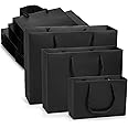 Lyellfe 30 Pack Black Gift Bags, Heavy Duty Kraft Paper Bag with Handle, Luxury Waterproof Shopping Bag, Retail Merchandise Bags for Birthday, Wedding, Christmas, S, M, L