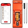 • Twin Probes, Dual Sensors: This Bluetooth thermometer for cooking features two wireless meat probes, each equipped with separate sensors capable of simultaneous internal/ambient temperature monitoring