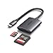 - Vesatile 2 in 1 Card Reader: The SD Card Reader is equipped with a USH-II SD slot and a USH-II TF slot. You can easily read USH-II SD, SDHC, SDXC, Micro SD, Micro SDHC, Micro SDXC, MMC RS-MMC cards, etc with it