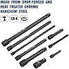 - 【High-quality Materials】The impact extension bar set is made of high-quality chrome-vanadium steel alloy with a corrosion-resistant black phosphate coating for durability. These extension bars feature a corrosion-resistant mirror chrome finish for easy cleanup.