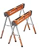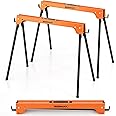 - 【Durable & Strong Steel Construction】 Made of sturdy steel, these sawhorses can hold up to 2,644 pounds per pair, allowing you to complete a variety of heavy-duty tasks. And the surface of the sawhorse is coated with premium orange + black powder, which is resistant to rust, has a long service life, and is eye-catching in the garage.