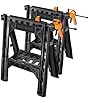 - FAST FOLDING & EASY TO SET UP SAW HORSE: This sawhorse has a collapsible design that allows it to stow its support legs by simply lifting the metal rod. This saves you from spending too much time and effort on setting up and packing the saw.