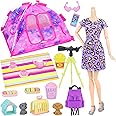 This item: ZITA ELEMENT 18 PCS Girl Dolls Travel Camping Tent Set and Accessories for 11.5 Inch Girl Doll Includes Tent, Clothes, Backpack, Toy Dog, Placemat, Toy Phone, Glasses (Doll NOT Included)