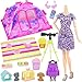 ZITA ELEMENT 18 PCS Girl Dolls Travel Camping Tent Set and Accessories for 11.5 Inch Girl Doll Includes Tent, Clothes, Backpack, Toy Dog, Placemat, Toy Phone, Glasses (Doll NOT Included)