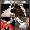 - 【COMFORTABLE AND SAFE】Meat Shears handle is made of high quality aluminum alloy for a comfortable grip. The non-slip groove design ensures this scissors will not slip. It can accommodate all your fingers. Maximize the full power of your palm to achieve a more energy-efficient effect. The handle is designed with anti-pinch support points to protect your palm from accidental pinching during using. Also, the end of the handle have 3 cutout design, so you can easily hang it on the wall or closet.