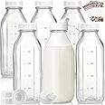 This item: Glass Milk Bottles w 100% Airtight Screw Lids and 2 Pour Spouts- 6 Pack 32 Oz Smoothie Bottles - Food Grade Glass Water Bottles for Almond Milk, Green Juice, Maple Syrup - Dishwasher Safe(Extra Lids)