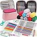 - Crochet Hooks Set: Beginner crochet kit includes 22 x aluminum alloy crochet hooks (with 1x storage bag), 10 x ergonomic crochet hooks, 10 x yarn balls, 9 x blunt needles (5.3cm, 6cm,7cm), 1 x needle bottle, 10 x knitting stitch rings (small size), 10 x knitting stitch rings (large size), 2 x knitting needles point protectors, 10 x plastic yarn needles, 30 x stitch markers, 1 set u-cable stitch holders, 1 set cable stitch holders, 1x floss bobbin, scissors, seam ripper, 2 x stitch holders
